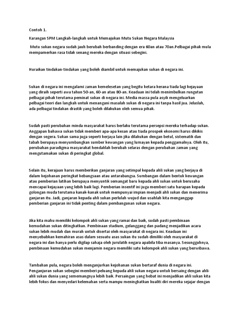 Sukan bukanlah semata-mata aktiviti fizikal yang dilakukan untuk mengisi masa lapang atau. CONTOH KARANGAN TERBAIK FAEDAH BERSUKAN Sukan bukanlah semata-mata aktiviti fizikal yang dilakukan untuk mengisi masa lapang atau sebagai riadah kecil mengeluarkan peluh. Antara jenis sukan itu meliputi bola sepak acara larian badminton hoki dan bola tampar yang menjadi pilihan utama rakyat Malaysia tersebut.